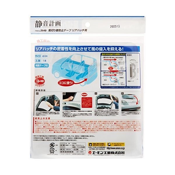 エーモン 静音計画 風切り音防止テープ リアハッチ用 約5m 2649